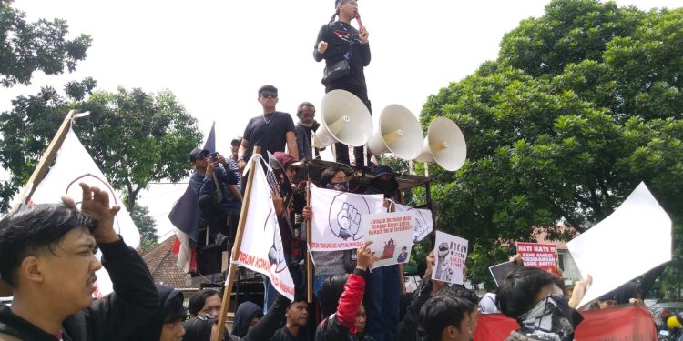 Massa yang datang langsung melakukan orasi mendukung perangkat hukum di Indonesia, baik Hakim dan Jaksa untuk menghormati lembaga Peradilan.