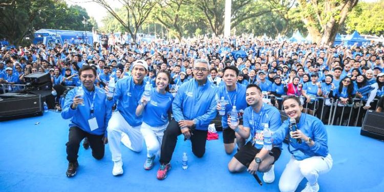 Udara pagi yang sejuk menyelimuti semangat ribuan orang yang mengenakan jersey biru khas Pocari Sweat.