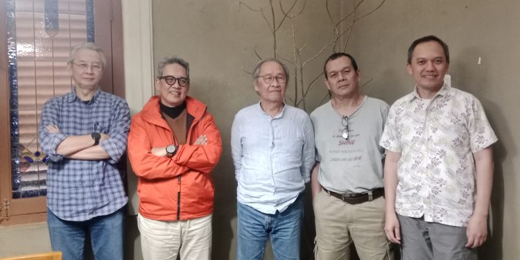 Hadir saat Press Conference, Mantan Tim Ahli Cagar Budaya (TACB) periode 2025, Ipong Witono, Pegiat, Pemerhati Peneliti, Cagar Budaya, Ir. David Bambang Soediono, Dosen Sekolah Arsitektur, Perencanaan, dan Pengembangan Kebijakan (SAPPK), Institut Teknologi Bandung (ITB), Dr. Ir. Denny Zulkaidi, M.U.P., Pendiri Komunitas Aleut, Ridwan Hutagalung, dan Ketua Bandung Heritage (Paguyuban Pelestarian Budaya Bandung) Aji Bimarsono.